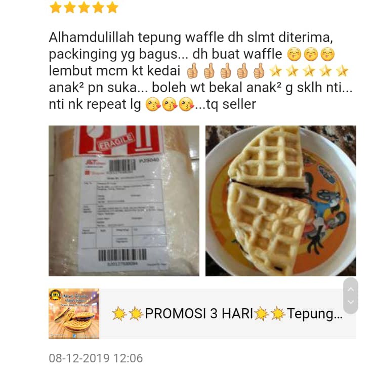 Assalamualaikum, saya harap sahabat semua enjoy dengan video yang saya buat ini. Ayak tepung gandum, tepung jagung dan baking powder. Kia rondo 7 sitters kami menghantar kereta di airport hubungi kami segera. 1/2 paket mauripan ( yis segera) . Memandangkan keluarga saya kecil, jadi saya boleh buat 4 kali makan. Pukul 3 biji telur, 500g air dan 50g. Yang saya buat ini resepi tepung waffle segera 1 cawan tepung gandum. 2 ½ cawan tepung gandum; ~ dalam mangkuk sedang campurkan tepung terigu garam baking powder dan gula. Tepung waffle sumo ni saya beli di shopee. Cara bancuh adunan waffle homemade yang sedap tanpa guna tepung segera. Cara bancuh tepung waffle anisa. Sila subscribe, like dan share untuk lebih banyak video . Buy tepung waffle mix instant 1/2kg (tepung waffle segera 1/2kg)
